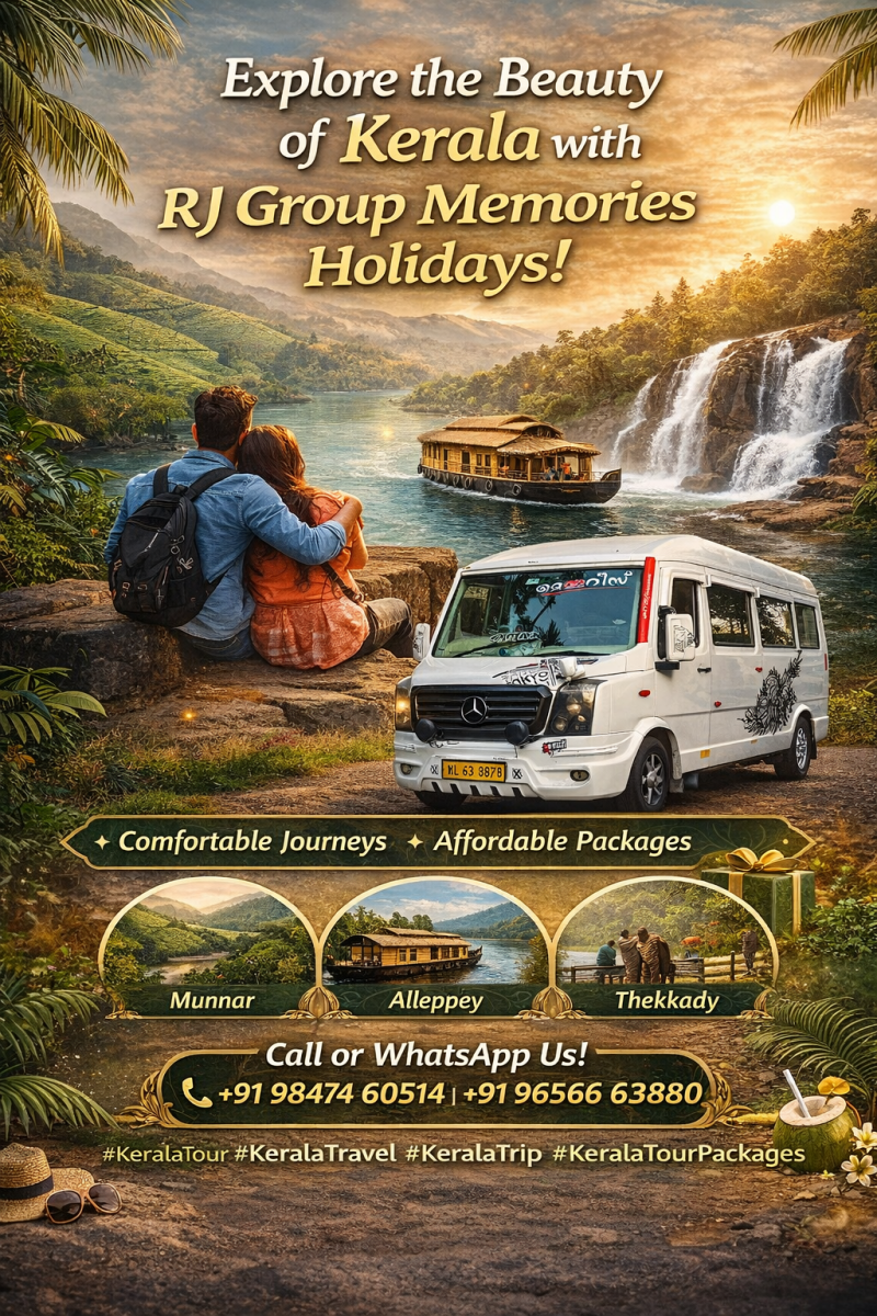 Memories Holidays Kerala Tours was inspired by a passion for travel and a desire to help visitors experience the true beauty of Kerala. Being based in Mala, Thrissur near Cochin International Airport, we often saw travelers arriving in Kerala who needed reliable transportation and guidance to explore the best destinations in the state.